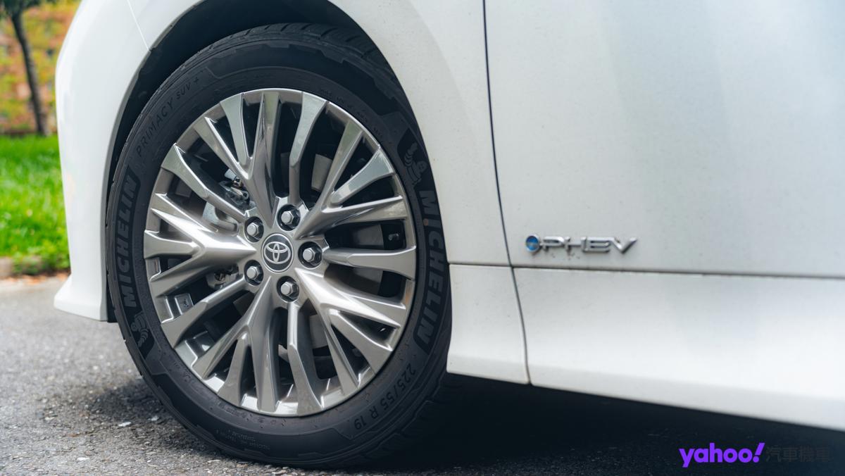 側滑門與電動尾門的電動機構等,都延續著和數年前相同的設定,僅有專為PHEV車型換裝19吋的亮銀鋁圈,是更顯尊貴和高雅沒有錯,但相較Hybrid車型更動