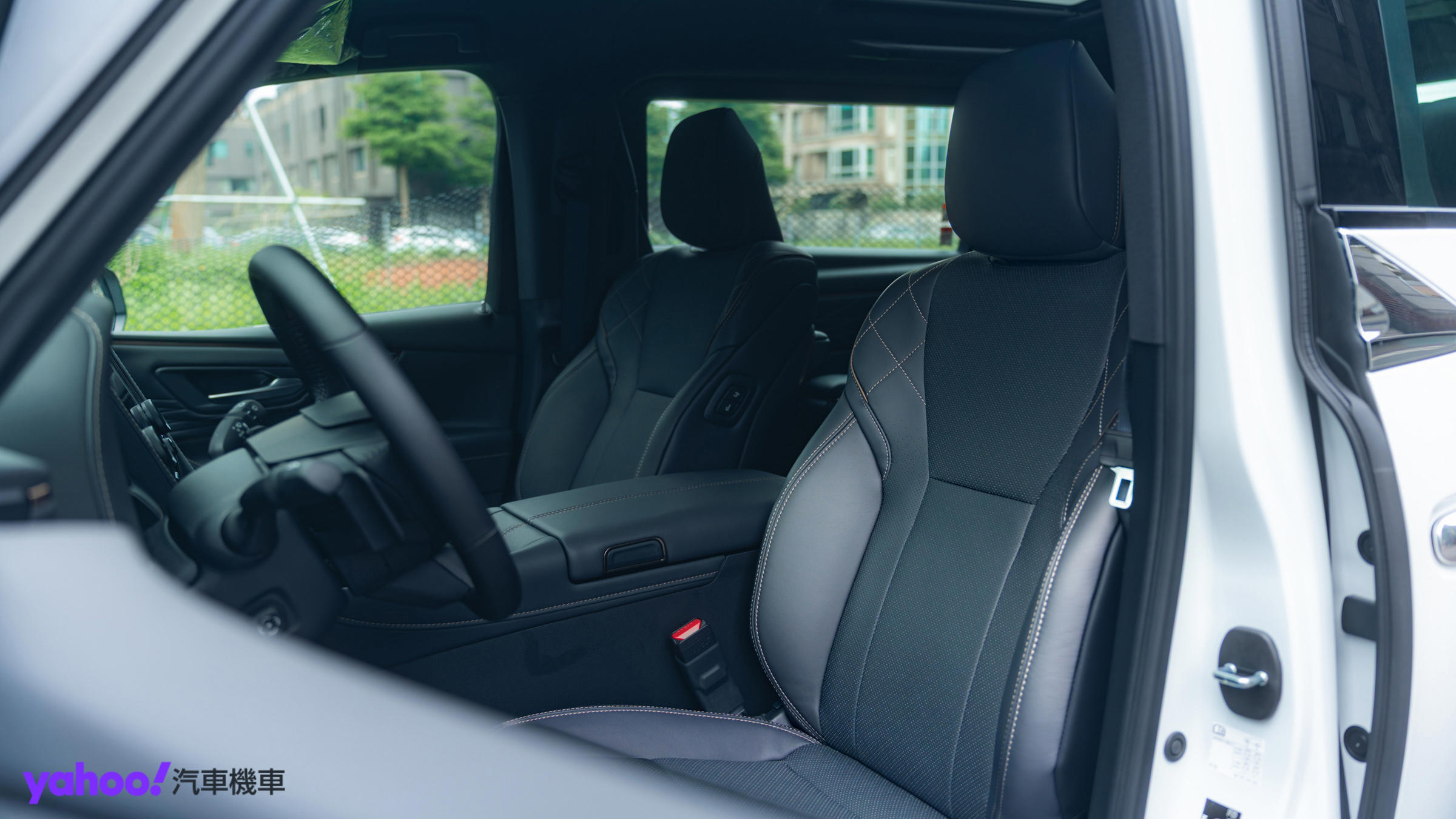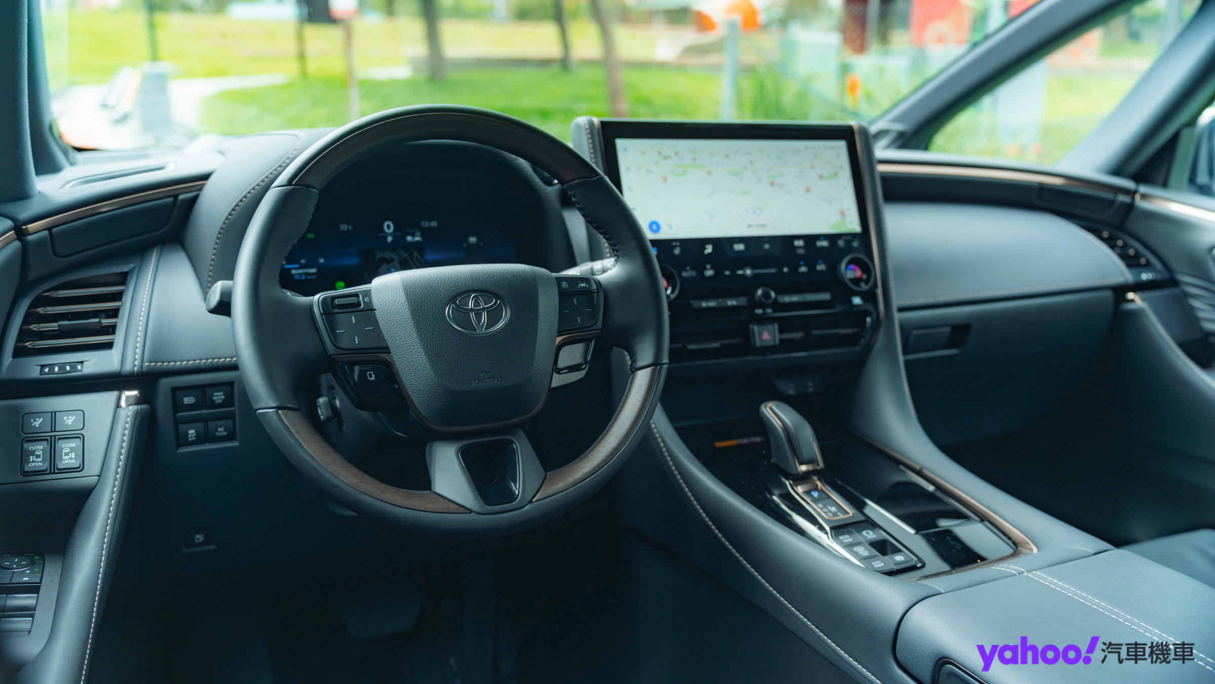 中控台、隱藏式的杯架和置物空間,皮、木相襯的方向盤,搭配由軌跡板所組成的多功能操作介面,以及針對司機位特設的滑門開關、第二排座椅一鍵復位等,
