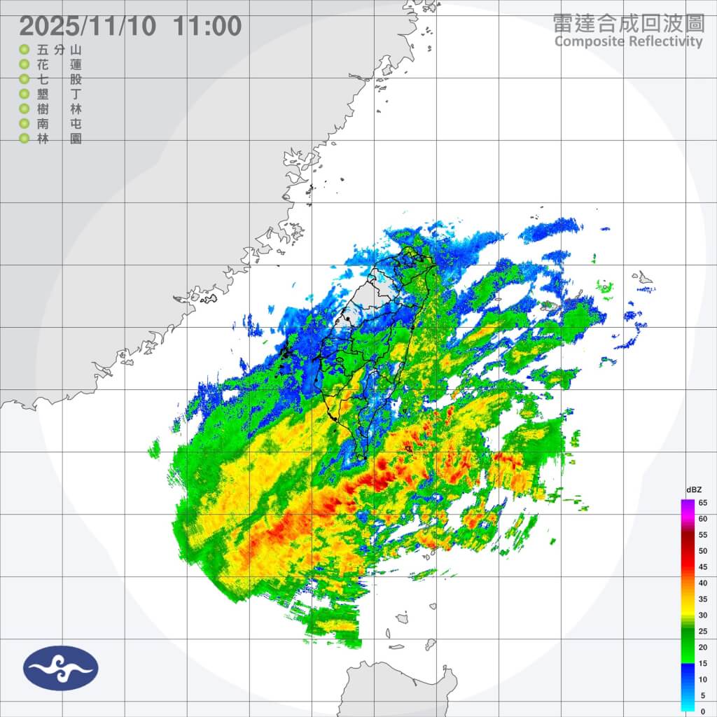 朱美霖指出,今天東北季風及颱風外圍環流共伴效應,降雨愈晚愈明顯,白天基隆北海岸、大台北山區、宜花地區局部大雨發生;