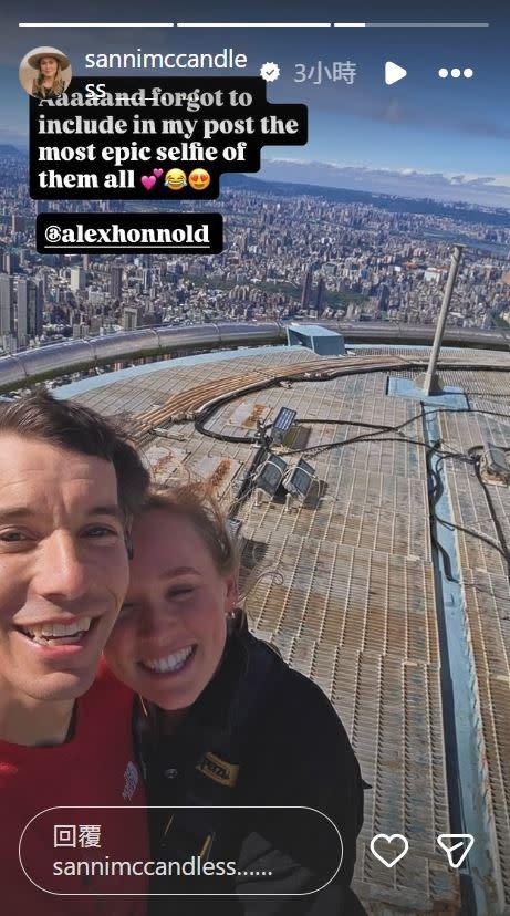 她也曬出與霍諾德在台北101頂端的甜蜜合影,背景是藍天下壯觀的台北市景,宛如上帝視角般震撼。